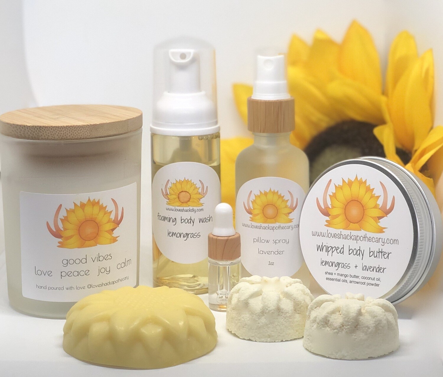 All of these products are made in the LoveShack studio. Only organic, natural & vegan ingredients are used. They use only the highest quality of essential oils and the scents are subtile and not overbearing.